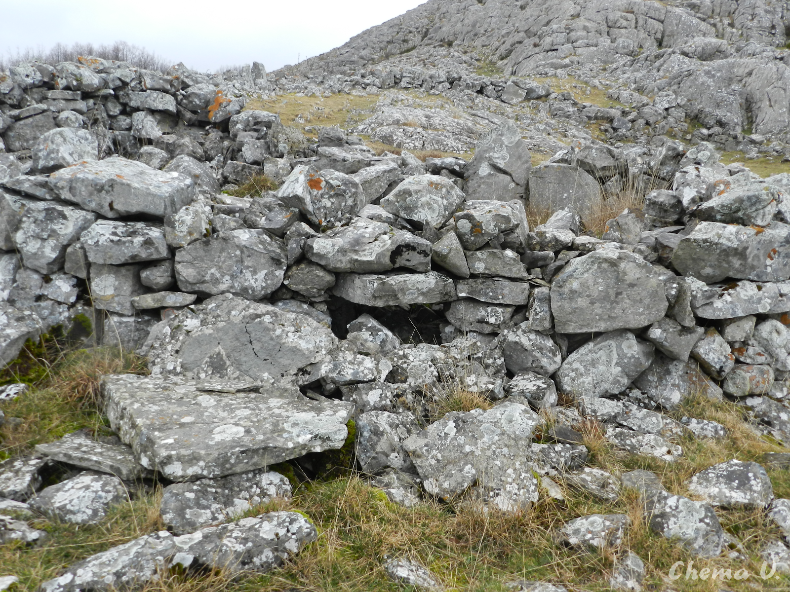 Aun quedan restos de pared de piedra, construida en seco. Aunque la mayor parte, esta totalmente arrasada.